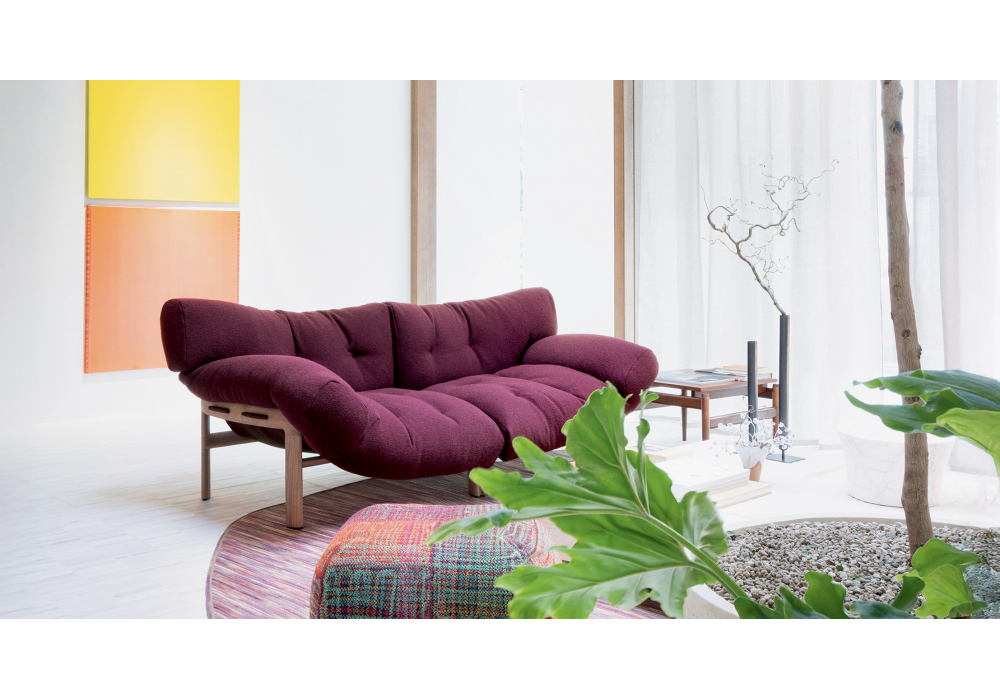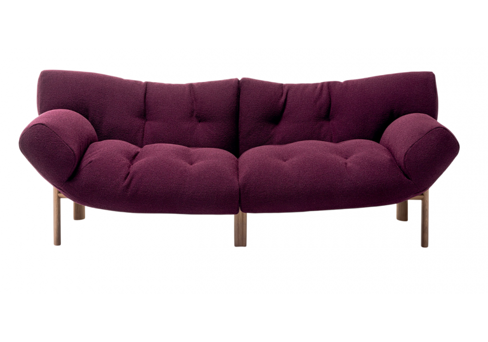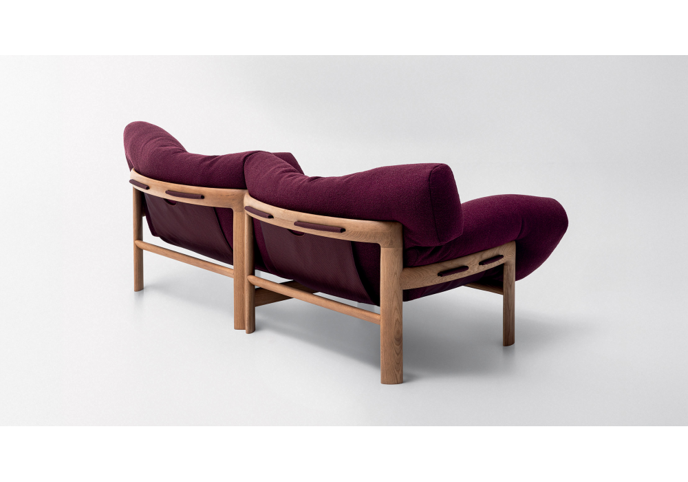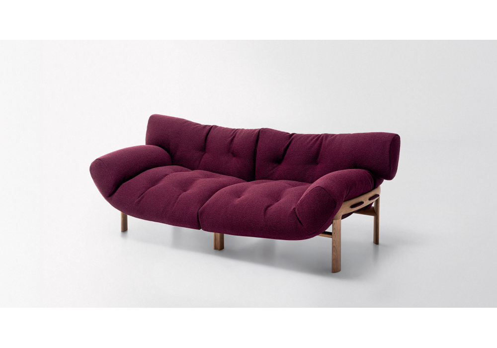 Légère von Angelo Mangiarotti und Chiara Pampo für Paola Lenti entworfen, ist ein Sofa mit einer Struktur aus massiver gebeizter Eiche mit Spitzen aus Kunststoff und Filz. Abnehmbarer Stoffbezug in verschiedenen Ausführungen.