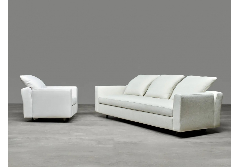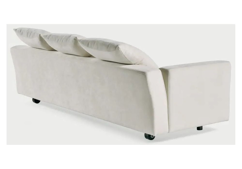 Bill von Hannes Wettstein für Baleri Italia entworfen, ist ein 2/3-Sitzer Sofa mit einer inneren Struktur aus mehrfach verleimtem Holz. Polsterung und klappbares Kissen, an die Rückenlehnenstruktur anpassbar, aus elastischem Polyurethanschaum. Vorderfüße aus pulverbeschichtetem Stahl in Schwarzgrau, hintere Metallrollen. Verfügbar aus Stoff oder Leder.