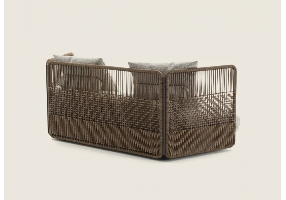 Everett von Antonio Citterio für Flexform entworfen, ist ein Sofa mit einer Holzplattform, die mit regeneriertem Leder bezogen ist. Gestell und Rückenlehne aus schwarz lackiertem Metall, mit Auflage auf Füßen aus thermoplastischem Material. Ledergeflecht in verschiedenen Farben. Sitzkissen aus Polyurethanschaum mit unterschiedlicher Dichte und einer oberen Schicht aus sterilisierten Gänsedaunen, bezogen mit einem verbundenen Schutzstoff. Bezug aus Stoff oder Leder.