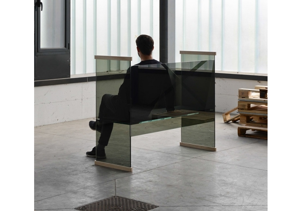 Diapositive von Ronan & Erwan Bouroullec für Glas Italia entworfen, ist ein Sofa aus extralight laminiertem und heißversiegeltem Glas, mit Elementen aus massiver natürlicher Esche oder dunkler Eiche, die an den Enden der tragenden Seiten befestigt sind. Erhältlich in verschiedenen Ausführungen.