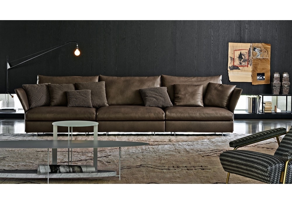 Holiday ist ein Sofa, das Ferruccio Laviani für Molteni&C entworfen hat. Ferruccio Laviani schlägt ein neues Konzeptsofa vor: evokativ, weniger einfach, dekorativer, basierend auf emotionalem Komfort. Holiday verfügt über einen umlaufenden Rücken, auf dem die Kissen angeordnet sind, einen leichten Rahmen, schicke, bequeme, charakteristische Sitze, Modetechniken für die Details und eine Vielzahl verschiedener Stoffe und Leder. Nicht nur eines, sondern zahlreiche Sofas dank verschiedener Elemente, die lineare oder eckige Kompositionen und informelles Sitzen ermöglichen.
