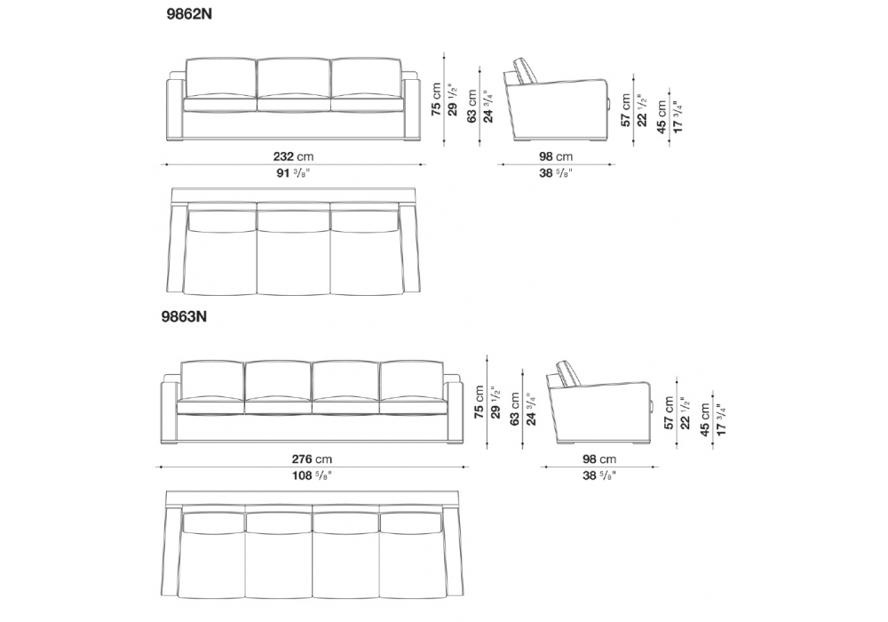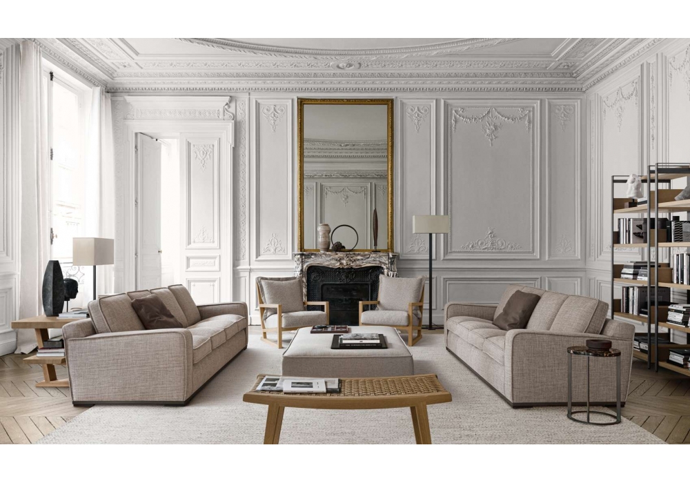 Imprimatur von Antonio Citterio für Maxalto entworfen, ist ein Sofa mit Unterkante aus bronziertem, nickellackiertem Stahl. Bezug aus verschiedenen Stoffen oder Ledern. Verfügbar in zwei Größen.