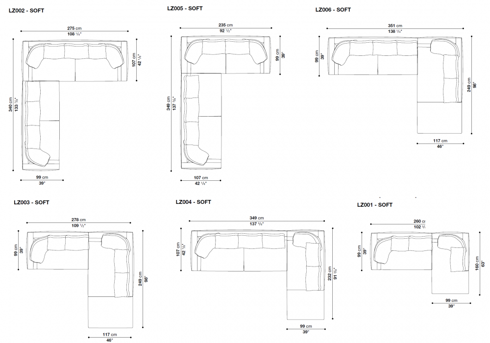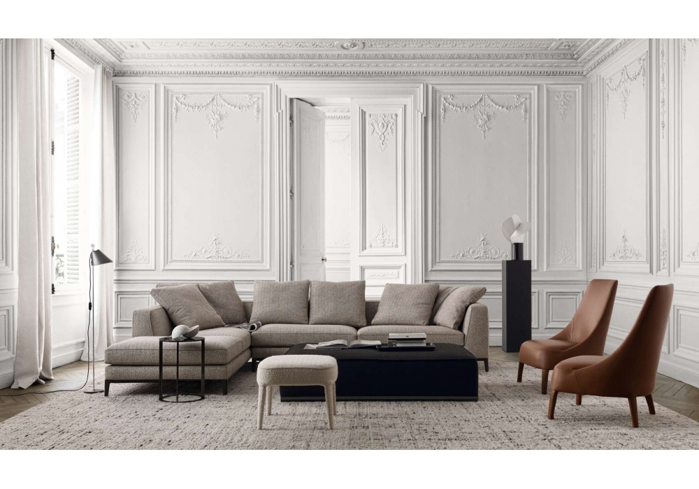 Lucrezia Soft von Antonio Citterio für Maxalto entworfen ist ein modulares Sofa mit einer Basis aus gegossenem und extrudiertem Aluminium, lackiert in verschiedenen Ausführungen. Polsterung aus Stoff oder Leder.