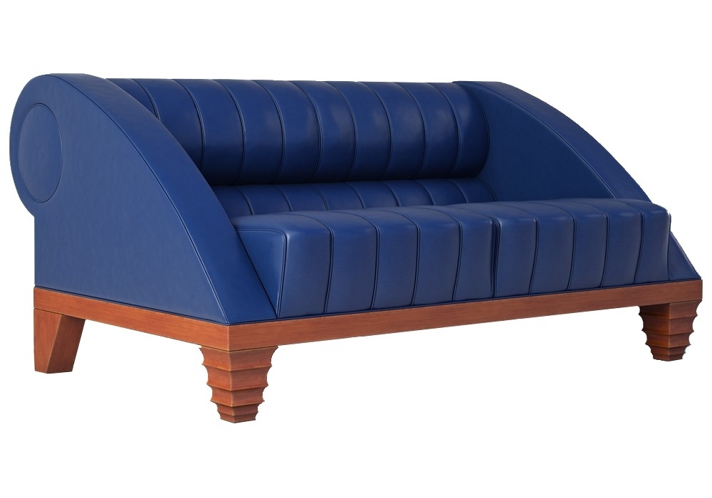 Aries is 2 seater sofa designed by Léon Krier for Giorgetti. Sofa with the basement and the feet in polished solid cherry wood. The frame is in solid beech wood and plywood. It has a fixed spring seat. The back and the arms are in non-deformable multidensity polyurethane, covered in fibre. The external upholstery is available either in fibre-quilted fabric or leather.