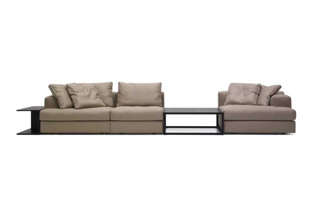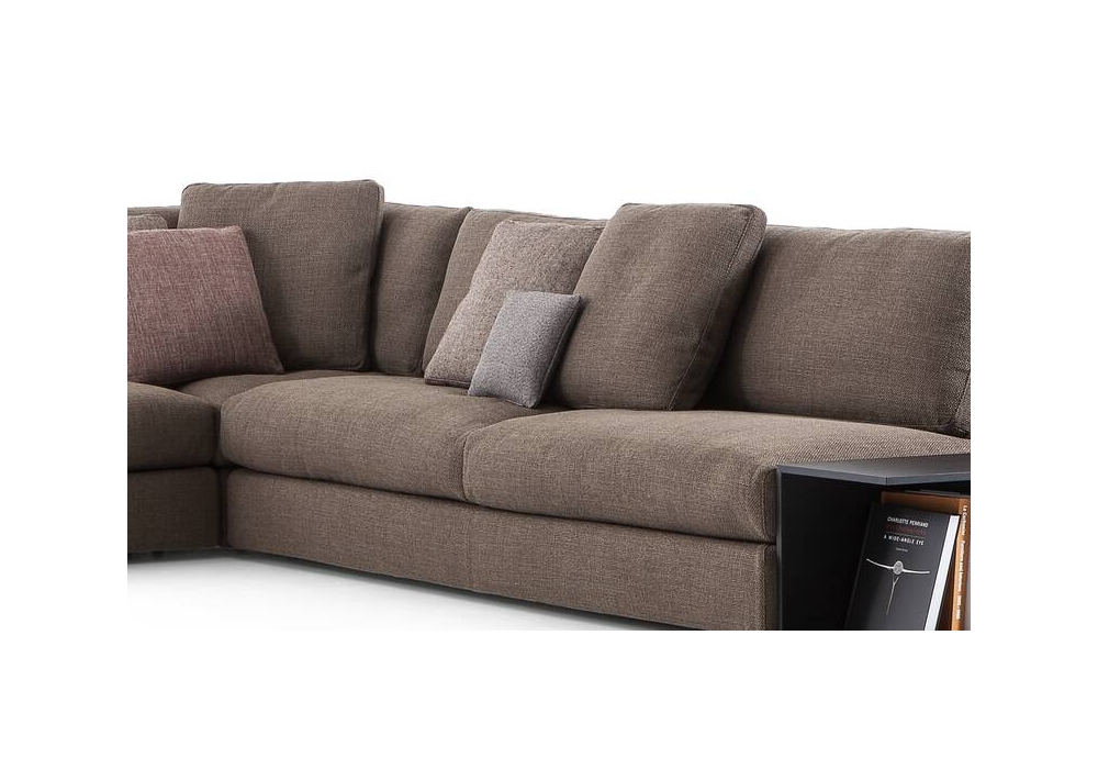 Miloe von Piero Lissoni für Cassina entworfen, ist ein Sofa mit einer Polsterung aus Federn und Polyesterwatte und einem abnehmbaren Bezug aus Stoff oder Leder.