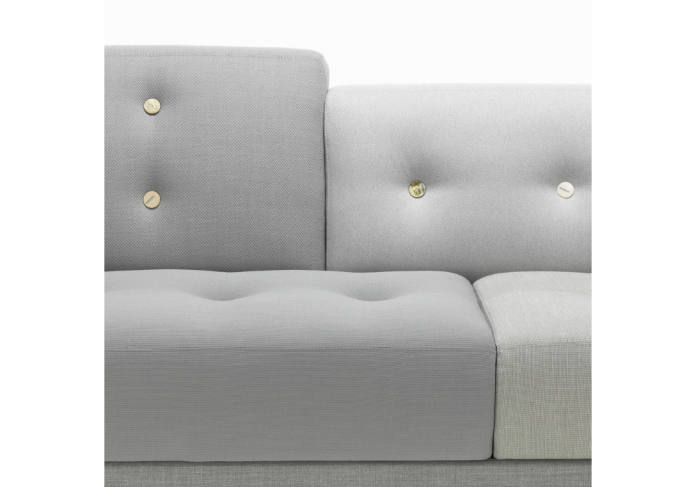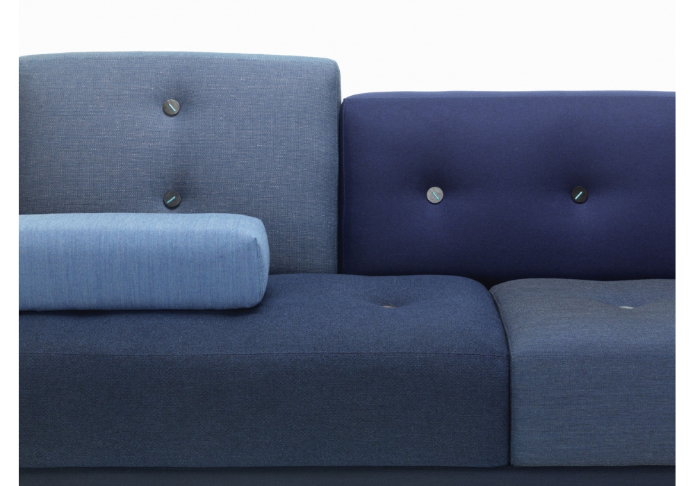 Polder Sofa ist ein Sitze Sammlung von Hella Jongerius für Vitra entworfen. „Polder“ bezeichnet in Holland, der Heimat der Designerin Hella Jongerius, das dem Meer durch die Anlage von Deichen und Entwässerungsgräben künstlich abgewonnene Land. Ebenso tief gelegen, ebenso fl ach und die Horizontale betonend, präsentiert sich der Korpus des Polder Sofas. Hella Jongerius wählte für das Sofa aufeinander abgestimmte Kombinationen von Farben und Stoff qualitäten und akzentuierte diese mit High-Tech-Garn und grossen Knöpfen aus natürlichen Materialien. Das Polder Sofa gibt es in verschiedenen Grössen und Farbkombinationen.