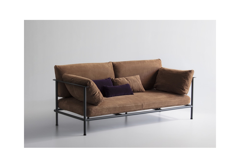 Elodie von Chiara Andreatti für Potocco entworfen, ist ein Sofa mit einer Struktur aus geprägtem, lackiertem Metallrohr in verschiedenen Ausführungen. Sitz und Rückenlehne sind mit feuerfestem Polyurethanschaum gepolstert und mit verschiedenen Stoffarten, Leder oder Kunstleder bezogen. Rückenkissen mit abnehmbarem Bezug.