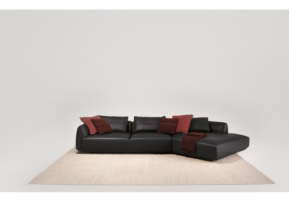 Naxos von Palomba Serafini Associati für Ferri 1956 entworfen, ist ein modulares Sofa mit einer Struktur aus massivem Tannenholz und Spanplatten mit elastischen Gurten. Polsterung aus Schaumstoff mit unterschiedlicher Dichte. Füße aus schwarzem Holz.