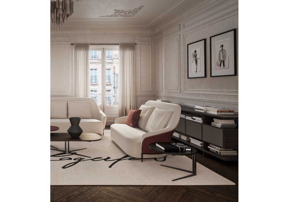 Saint-Guillaume, von Matteo Nunziati für Karl Lagerfeld Maison entworfen, ist ein Sofa, das als Zwei- oder Dreisitzer erhältlich ist. Die Schale und die vordere Polsterung können in verschiedenen Stoffen ausgeführt werden. Das untere Gestell besteht aus Holz, das in folgenden Ausführungen bestellt werden kann: amerikanischer Nussbaum matt, dunkel gebeizte Eiche, grau gebeizte Eiche matt, schwarzer Kaffeebambus matt.