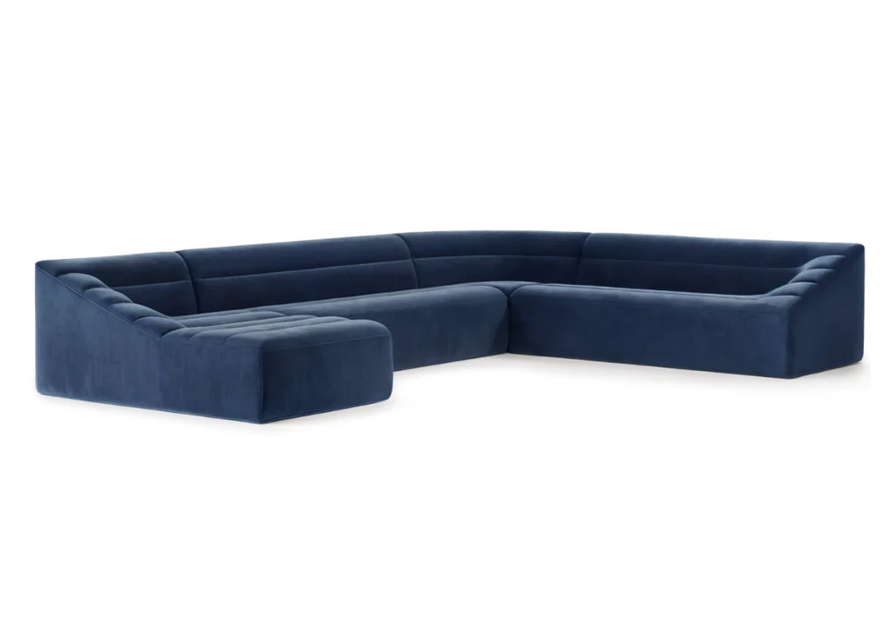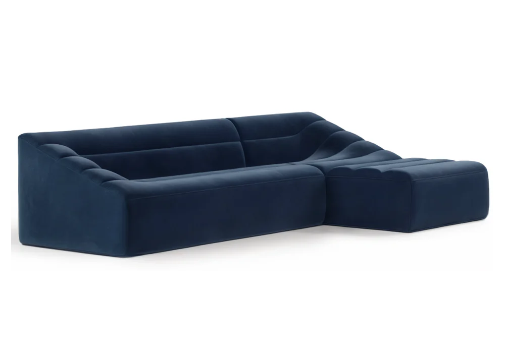 Wellen, von Toan Nguyen für Karl Lagerfeld Maison entworfen, ist ein modulares Sofa mit Holzinnenrahmen und nicht abnehmbarer Polsterung, die in verschiedenen Stoffen verfügbar ist.