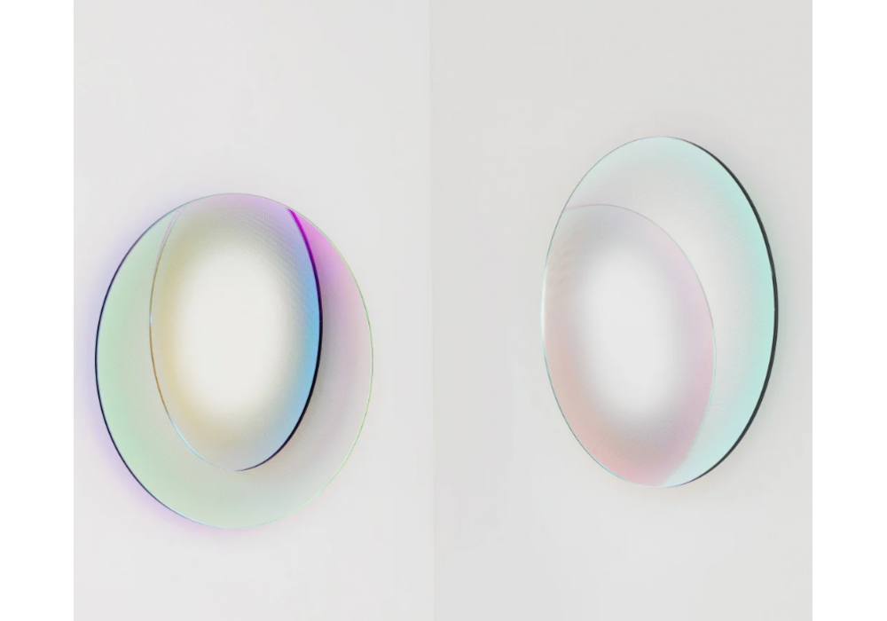 Shimmer von Patricia Urquiola für Glas Italia entworfen, ist ein Spiegel aus extraleichtem Kristallglas mit einem abgestuften Spiegel und einer schillernden, mehrfarbigen Oberfläche. Auch mit Beleuchtungssystem erhältlich (außer Modell SH03).