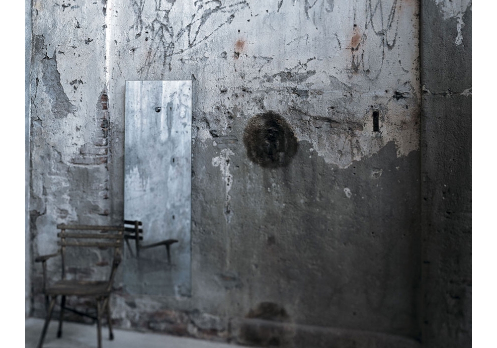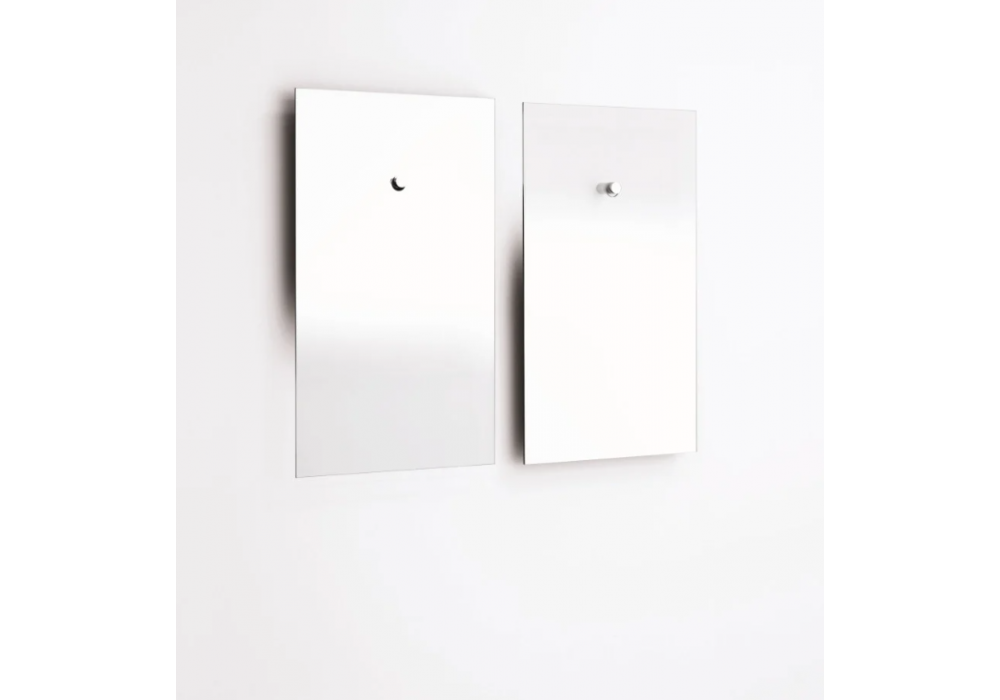 Fiction von Jean Marie Massaud für Glas Italia entworfen, ist ein Spiegel aus extraleichtem Kristallglas mit schattierter Versilberung. Die Wandmontage erfolgt über eine rückseitig verleimte Stange und einen verchromten Metallzylinder.