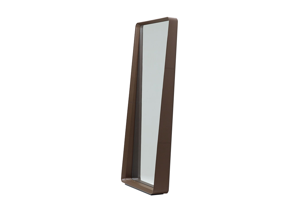 Frame, von Carlo Colombo für Giorgetti entworfen, ist einer Lehnender Spiegel gegen die Wand mit seitlichem Profil in Sattelleder.
