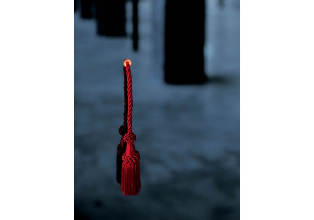 Diva von Jean Marie Massaud für Glas Italia entworfen, ist ein Bodenspiegel aus geklebtem Rauchglas. Der obere und untere Teil sind transparent, während der mittlere einen Spiegel hat, durch den Sie das Licht einer auf der Rückseite positionierten Lampe sehen können. Die Lampe wird durch Ziehen an einem roten Kabel ein- und ausgeschaltet.