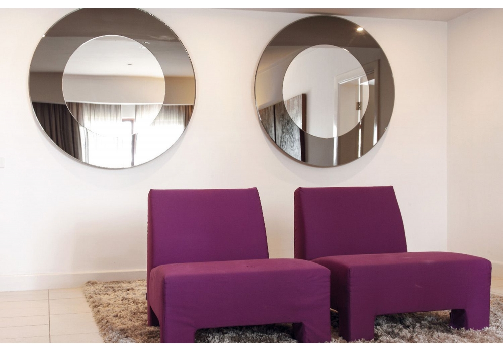 Forvanity, von O. Moon für Porada entworfen, ist einer Runder Wandspiegel mit Gestell verfügbar in Natur- oder Rauchspiegel.