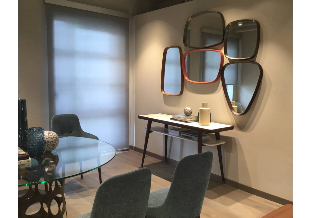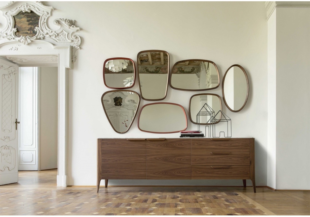 Mix, von Carlo Ballabio für Porada entworfen, ist einer Wandspiegel mit Gestell aus massivem Canaletta Nussbaum oder matt lackiert. Wandbefestigung ermöglicht Spiegel bis 360° drehen. Montageschablonen enthalten. Verfügbar in verschiedenen Abmessungen.