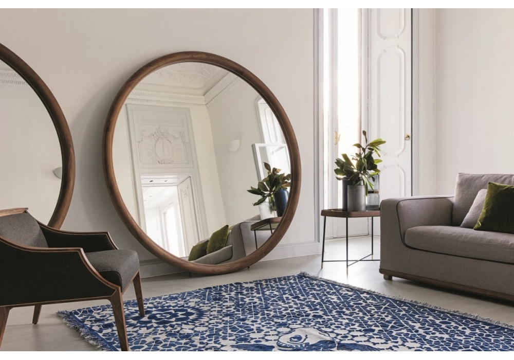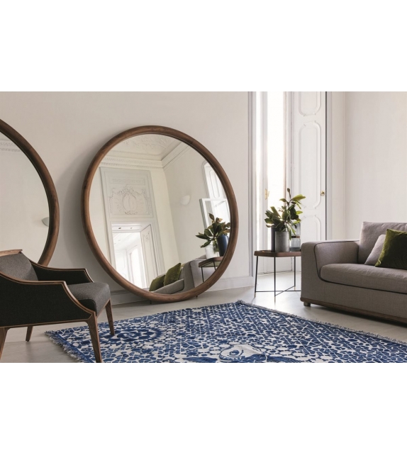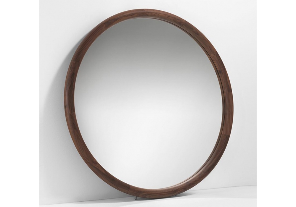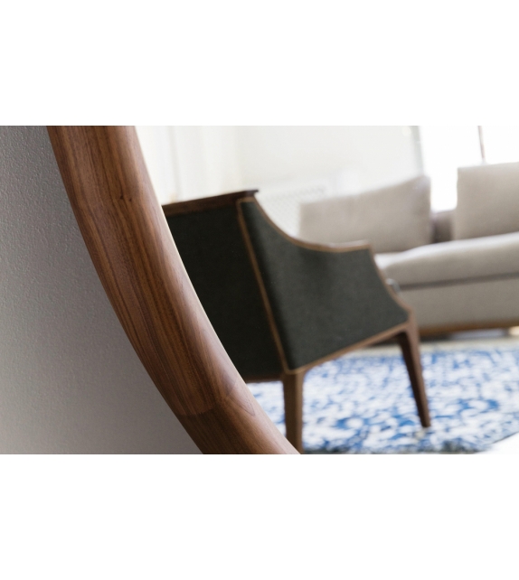 Giove, von T. Colzani für Porada entworfen, ist einer Runder Spiegel mit Rahmen aus massivem Nussbaum Canaletta. Für Wandbefestigung muss man die Stämmenfüße beseitigen.