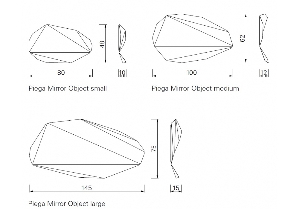 Piega von Victoria Wilmotte für ClassiCon entworfen, ist einer Spiegelsammlung erhältlich in drei Größen aus spiegelpoliertem Edelstahl, gefaltet. Details siehe Preisliste.