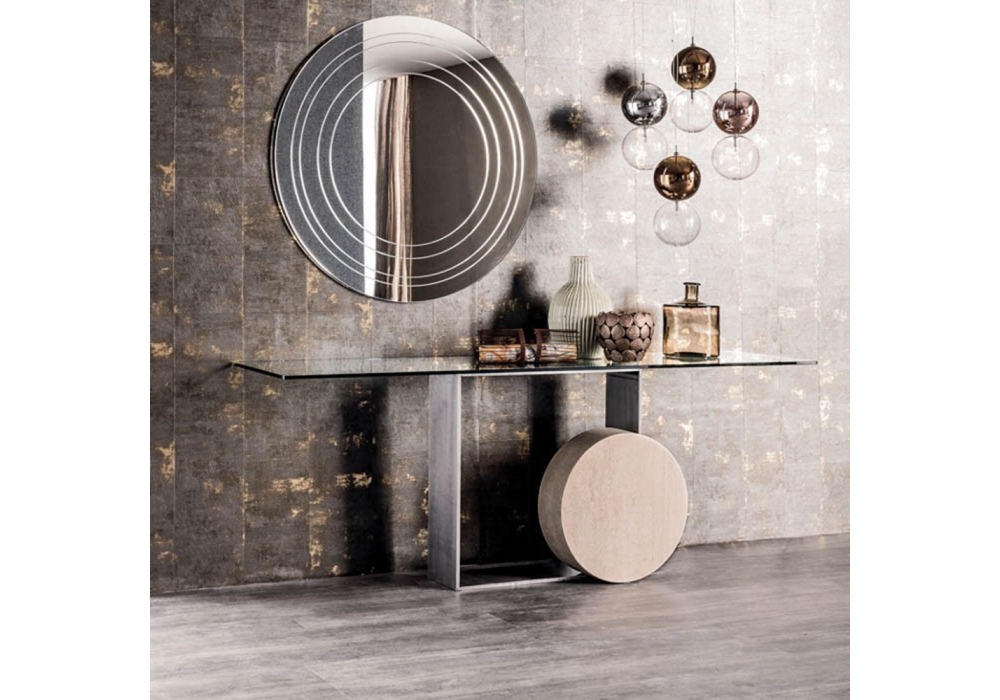 Ring, von Emanuele Zenere für Cattelan Italia entworfen, ist einer Wandspiegel, der komplett aus verspiegeltem Glas besteht mit kreisförmigen Einschnitten.
