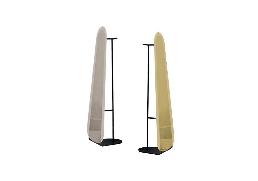 Clessidra Free Standing von Studio Irvine für Sovet entworfen, ist ein Bodenspiegel mit geprägter schwarzer Metallstruktur. Verfügbar in mehreren Ausführungen.