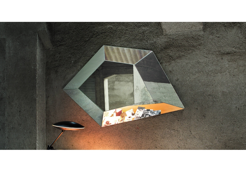 City Life von Riflessi entworfen, ist ein fünfeckiger Spiegel mit einem Rahmen aus geneigten Spiegelflächen. 360 ° installierbar. Erhältlich in 2 Abmessungen.