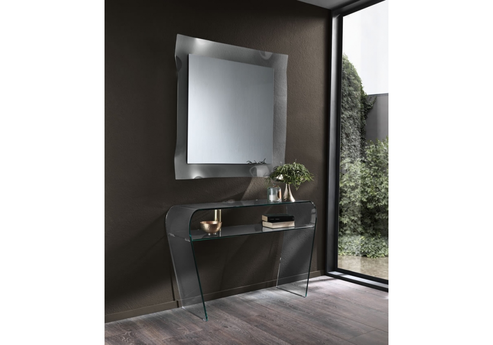 Ginevra von Riflessi entworfen, ist ein Spiegel mit einem transparenten oder bronzierten Wellenrahmen. Verfügbar mit LED-Beleuchtung mit warmem Licht.