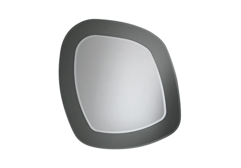 Sirmione von Riflessi entworfen, ist ein abgeschrägter Spiegel, der aus zwei übereinander liegenden Spiegelflächen besteht, eine aus Spiegelglas und eine aus Rauchspiegelglas.