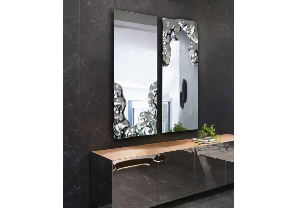 Venere von Luca Roccadadria für Riflessi entworfen, ist ein Spiegel aus verspiegeltem oder bronziertem geschmolzenem Glas.