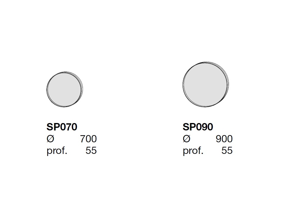 | Abmessungen | Ø 70 cm x 5.5 cm; Ø 90 cm x 5.5 cm. |