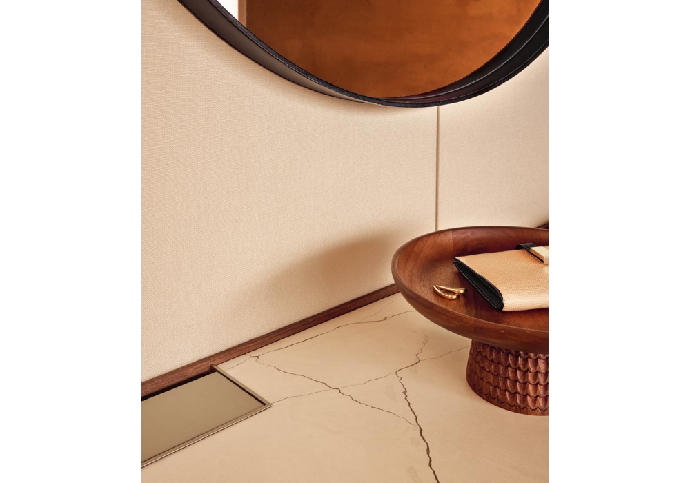 Circle, von R&D Poliform entworfen, ist ein Spiegel mit Gestell aus Metall bezogen mit Kernleder.
