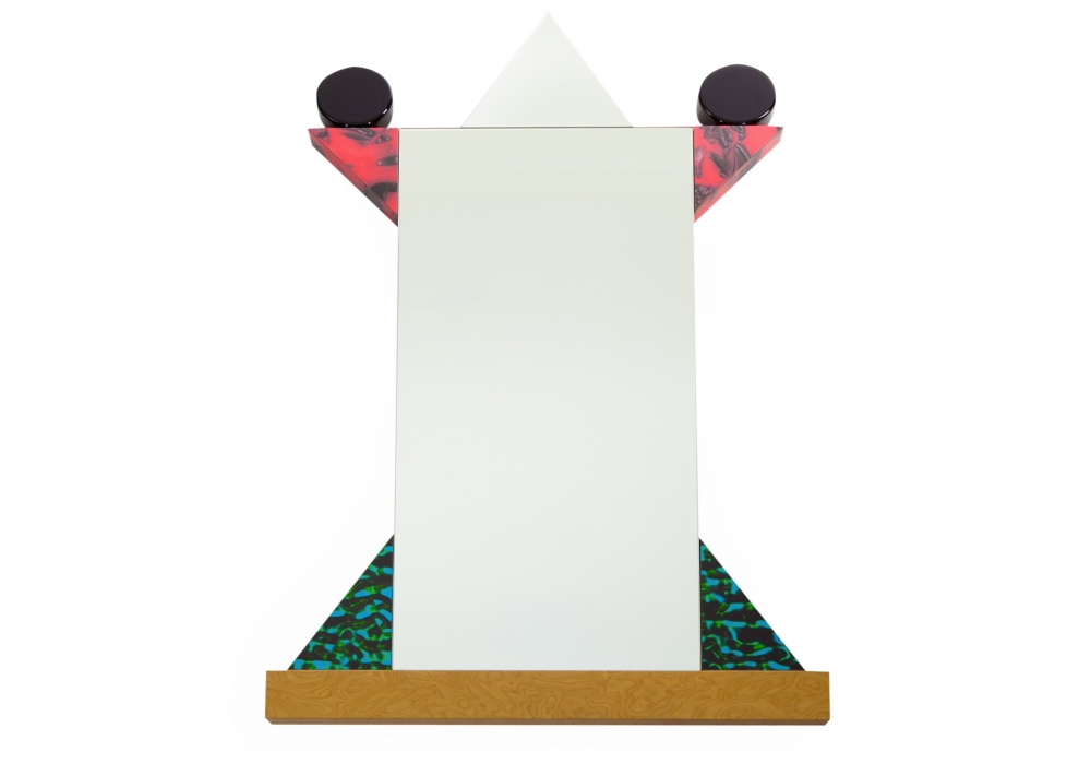 Diva von Ettore Sottsass für Memphis Milano entworfen, ist ein Spiegel mit einer Kunststofflaminatstruktur.