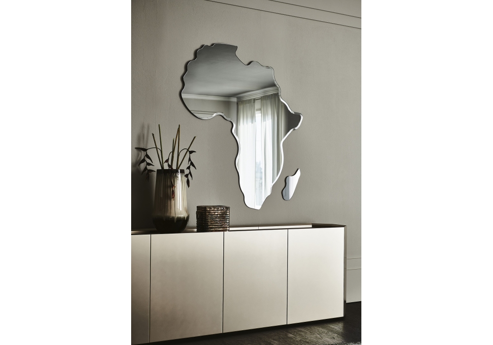 Africa von Paolo Cattelan für Cattelan Italia entworfen, ist ein Wandspiegel aus rauchgrau oder bronze verspiegeltem Glas mit abgeschrägten wachsenden Kanten.