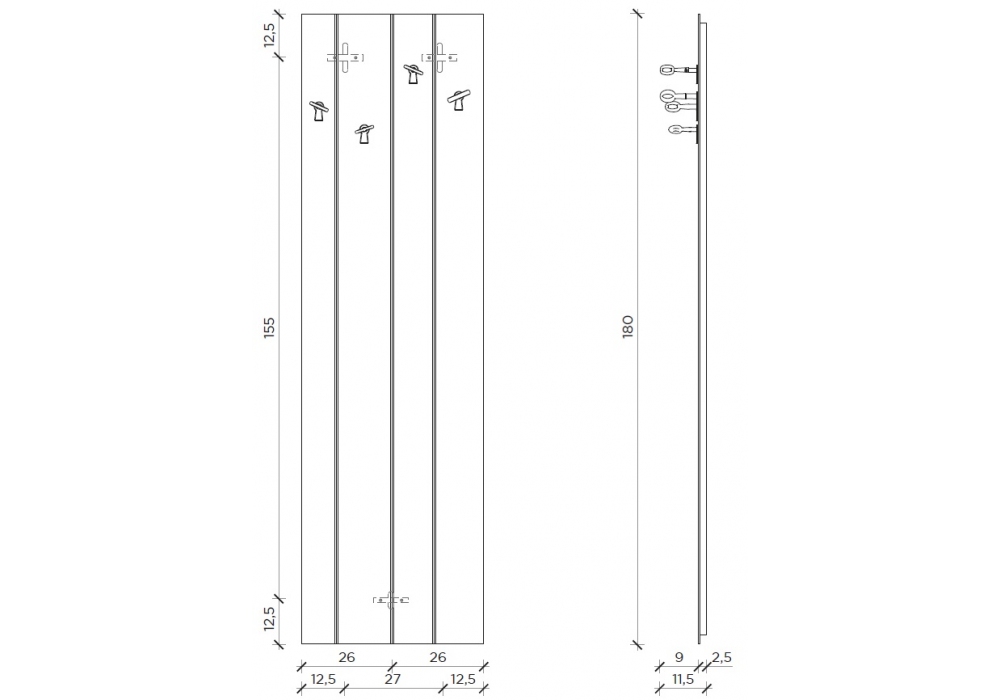 Memorie von Luca Somaini für Mogg entworfen, ist ein Wandspiegel mit 4 Aufhängerschlüsseln aus Messingguss mit einem glänzenden schwarzen Nickel-Finish.