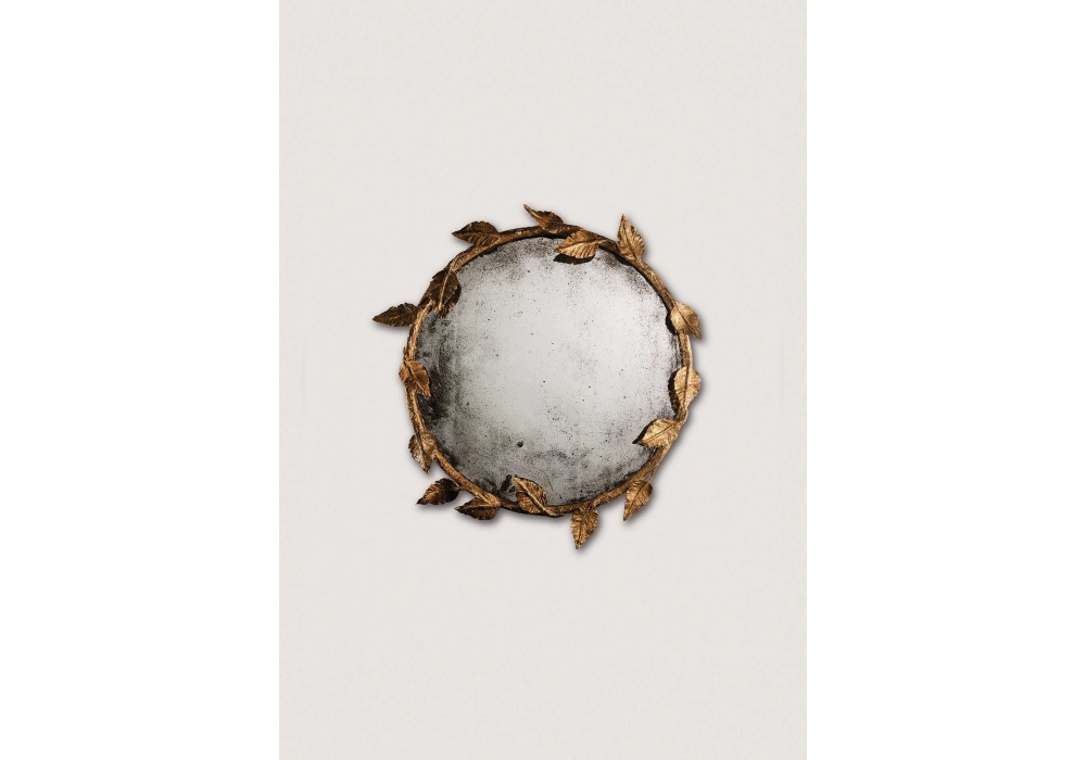Aurelia Small hergestellt und signiert von Porta Romana, ist ein runder Spiegel, der vollständig aus geschmiedetem Stahl besteht, der von Hand geschnitzt und dekoriert wurde. Der Metallrahmen ist mit mehreren floralen Applikationen verziert und in verschiedenen Farben bemalt. Das reflektierende Glas ist in Standardglas oder Antikglas erhältlich.