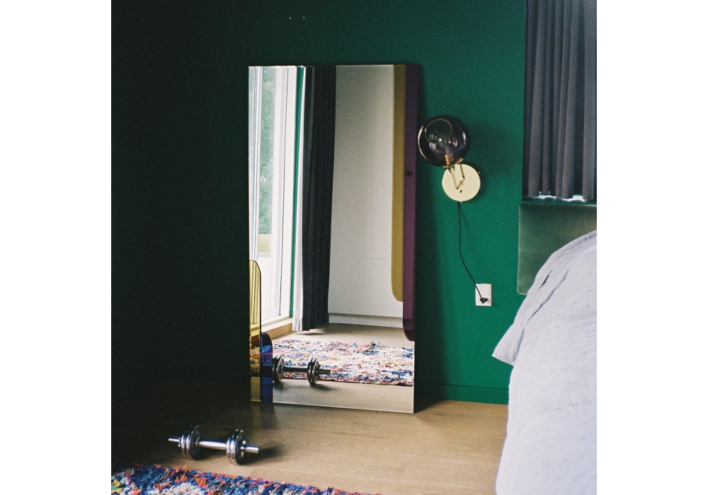 Scandinavian Fall produziert und entworfen von Reflections Copenhagen, ist ein viereckiger Glasspiegel, der auf einer MDF-Stützbasis angebracht ist. Der Spiegel ist mit Applikationen in Silber, Blau, Burgund und Militärgold angereichert.
