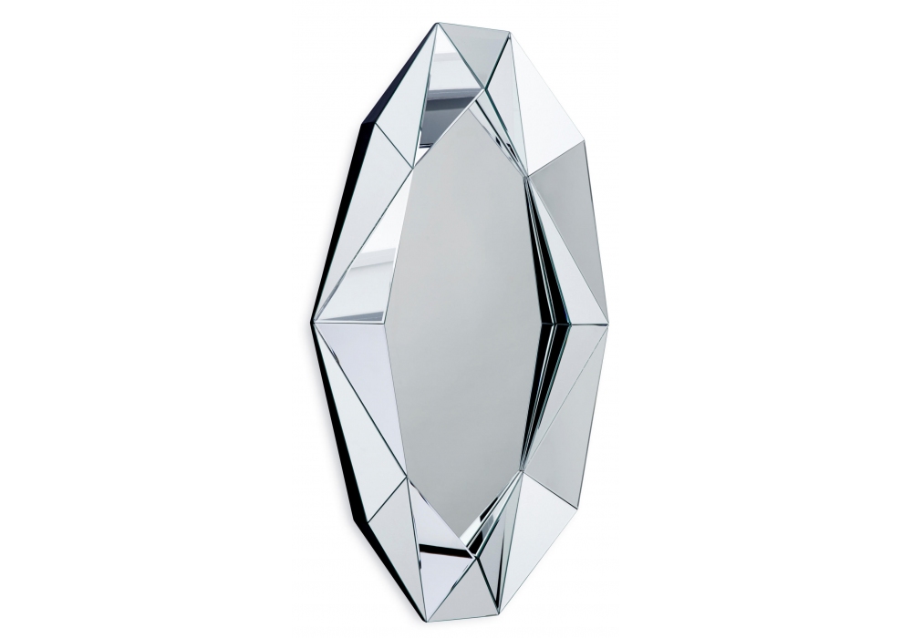 Diamond XL hergestellt und entworfen von Reflections Copenhagen, ist ein extrahierter Glasspiegel, der auf einer MDF-Stützbasis angebracht ist. Der Rahmen wird durch verschiedene nebeneinander angeordnete geometrische Applikationen strukturiert, die eine lebendige Oberfläche bilden, die an den Art-Deco-Stil erinnert.