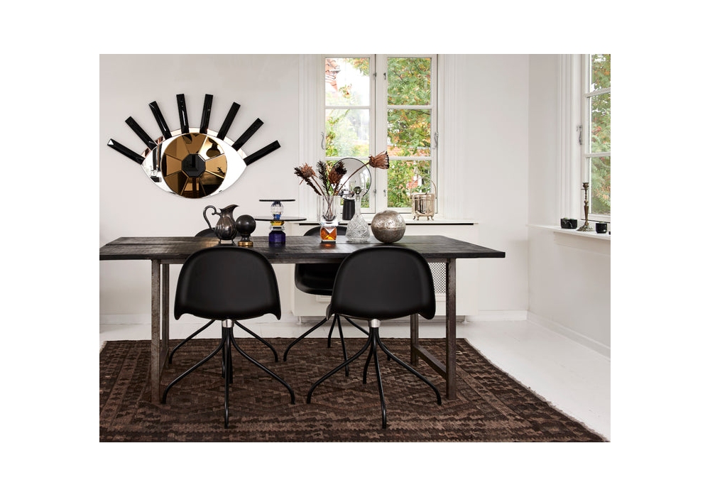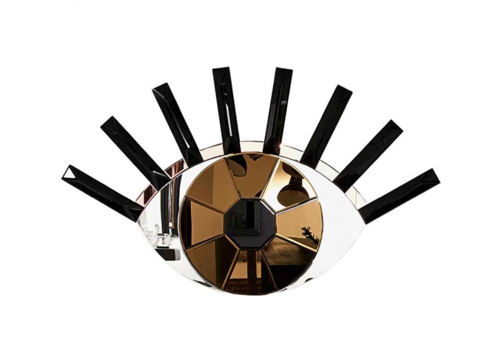 Eye Of The Tiger produziert und entworfen von Reflections Copenhagen, ist ein abstrakter Glasspiegel, der auf einer schwarz lackierten MDF-Stützbasis angebracht ist. Die Besonderheit dieses Spiegels ist seine Form, die ein Auge darstellt, das aus mehreren Glasteilen in verschiedenen Farben und Größen besteht, die von Hand geschnitten und zusammengesetzt werden.