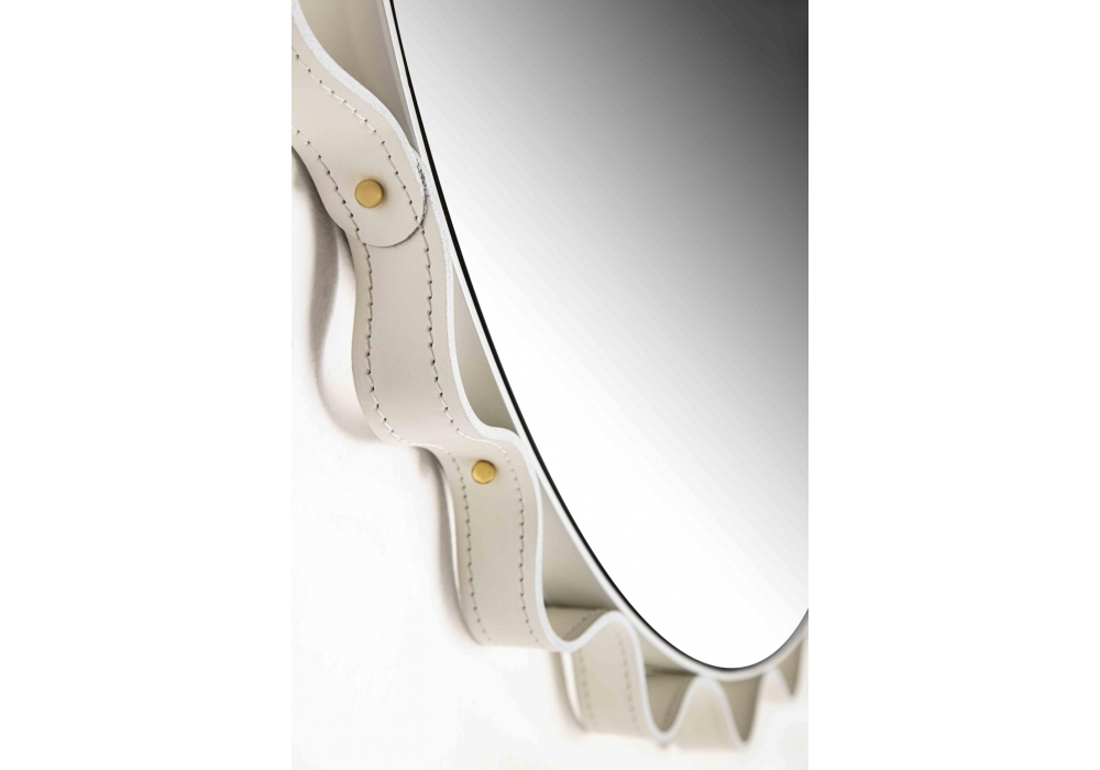 Glimt von Mia Cullin für Enrico Pellizzoni entworfen, ist ein runder Spiegel mit lackierter Metallstruktur, die mit Leder überzogen ist. Die Farbe der Struktur entspricht der Farbe der Polsterung. Erhältlich in verschiedenen Ausführungen und Größen.