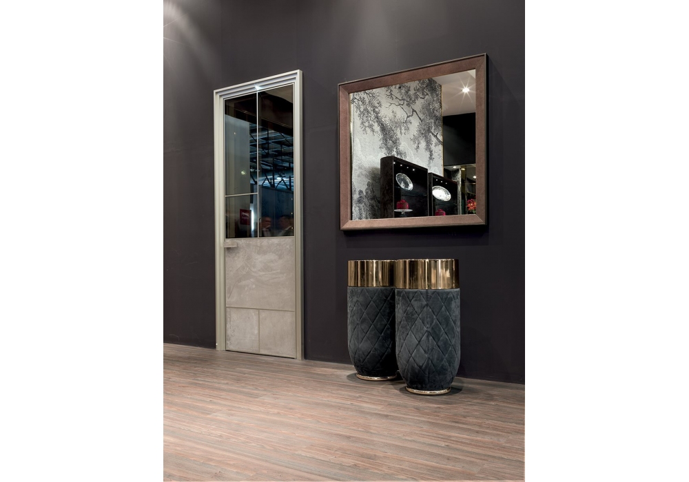 Nanami von Silvia Musetti für Longhi entworfen, ist ein Spiegel mit Metallkante in glänzender oder matter Ausführung und mit Leder bezogenem Rahmen. Verfügbar in mehreren Abmessungen.