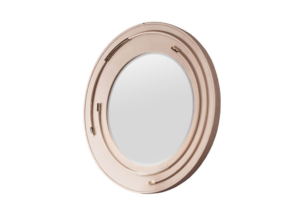 Noir Von Andrea Bonini für Turri entworfen, ist ein runder Spiegel mit einer Struktur aus MDF und Spanplatten, die mit verschiedenen Ledern bezogen sind. Metalleinsätze in Hellgold oder Bronze.