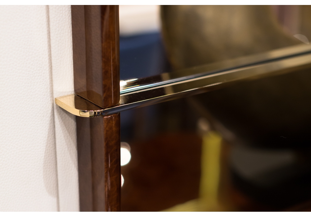 Madison von Andrea Bonini für Turri entworfen, ist ein Spiegel mit MDF-Struktur in glänzend lackierter Ausführung und goldenen Metalldetails.
