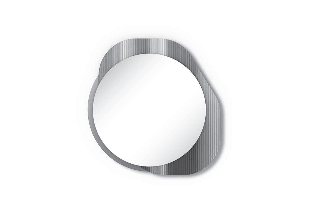 Shift von Francesca Lanzavecchia für Fiam entworfen, ist ein Wand-spiegel mit Rahmen aus zwei Glaselementen: Teil aus transparentem Glas oder rückseitig versilberter geschmolzener Bronze; Teil aus flachem Rauch- oder Bronzeglas. Rückenrahmen aus lackiertem Metall. Möglichkeit der vertikalen oder horizontalen Aufhängung.