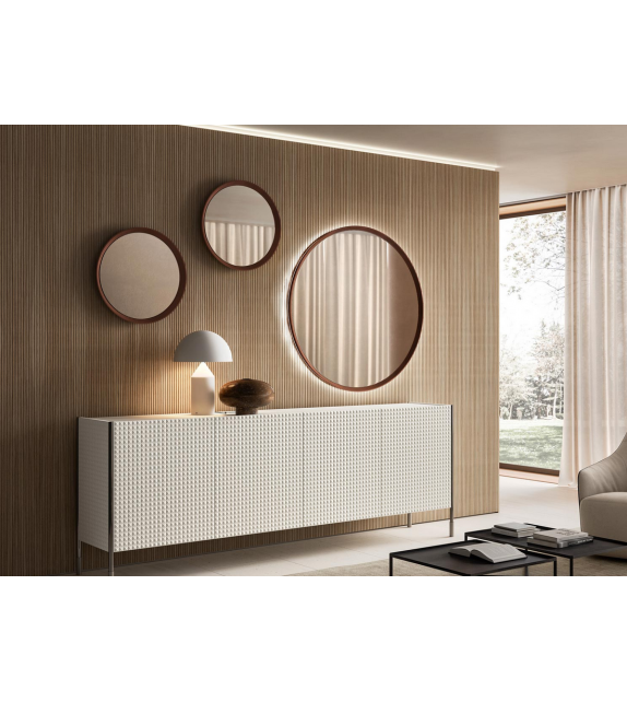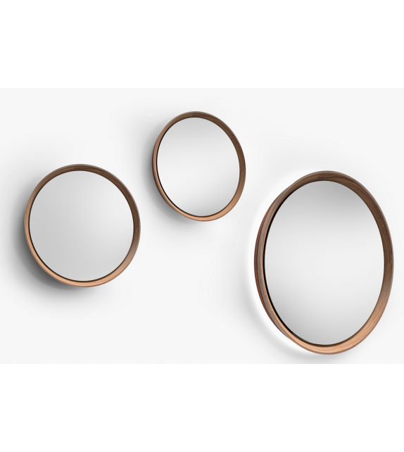 Peep signiert von Silvano Pierdonà für Capodaopera, ist ein runder Spiegel mit Rahmen aus massivem Walnussholz oder in verschiedenen Lackausführungen.