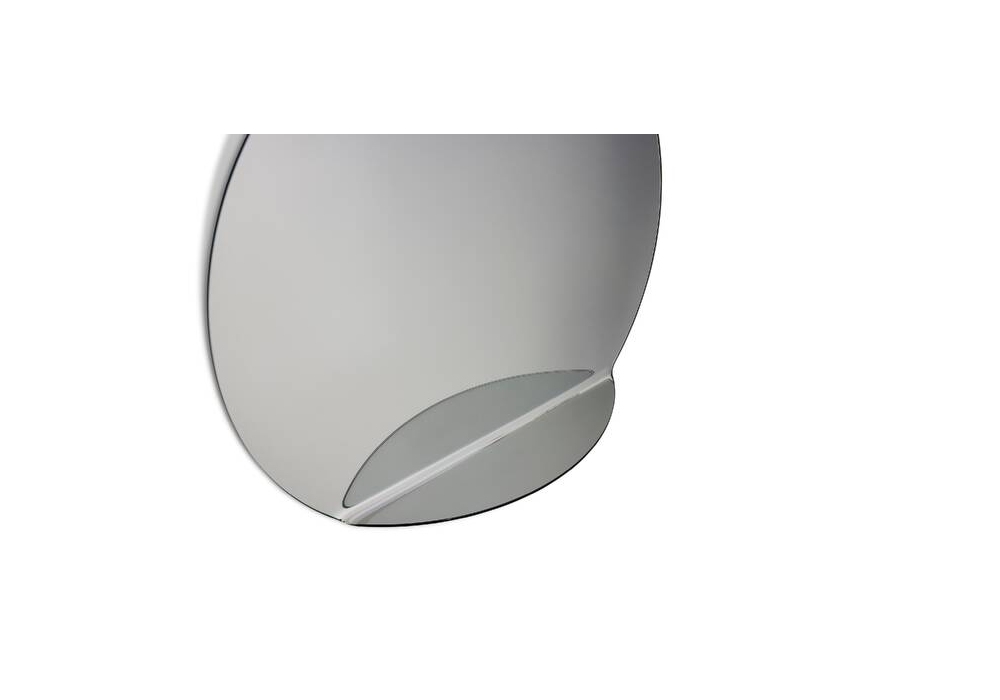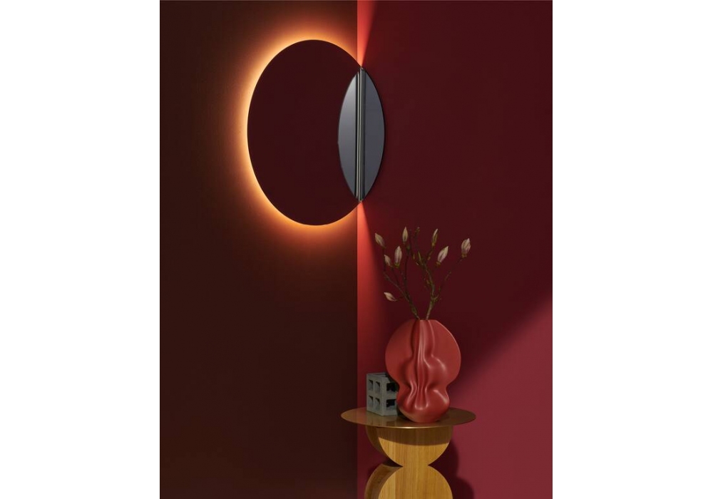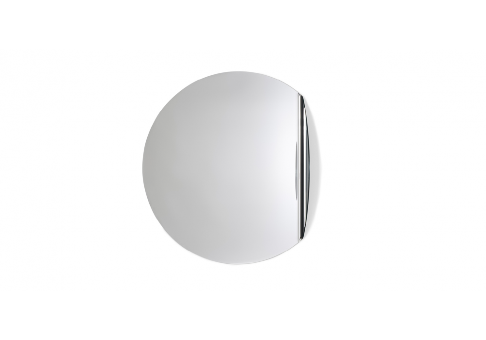 Gibbous von Michael Anastassiades für Cassina entworfen, ist ein runder Spiegel aus extraklarem gebogenem Glas. Erhältlich mit oder ohne Hintergrundbeleuchtung.