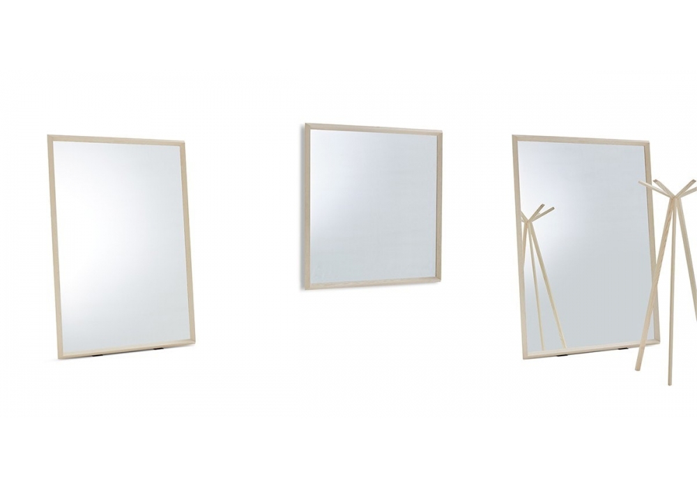 Rokumaru von Nendo für DePadova entworfen ist ein Spiegel mit einem massiven, mit Anilin gebeizten, gebleichten Eschenrahmen, der mit transparentem Lack versehen ist und auf schwarz lackierten Stahlfüßen ruht. Das extraklare silberne reflektierende Glas. Rokumaru ist in verschiedenen Modellen erhältlich.