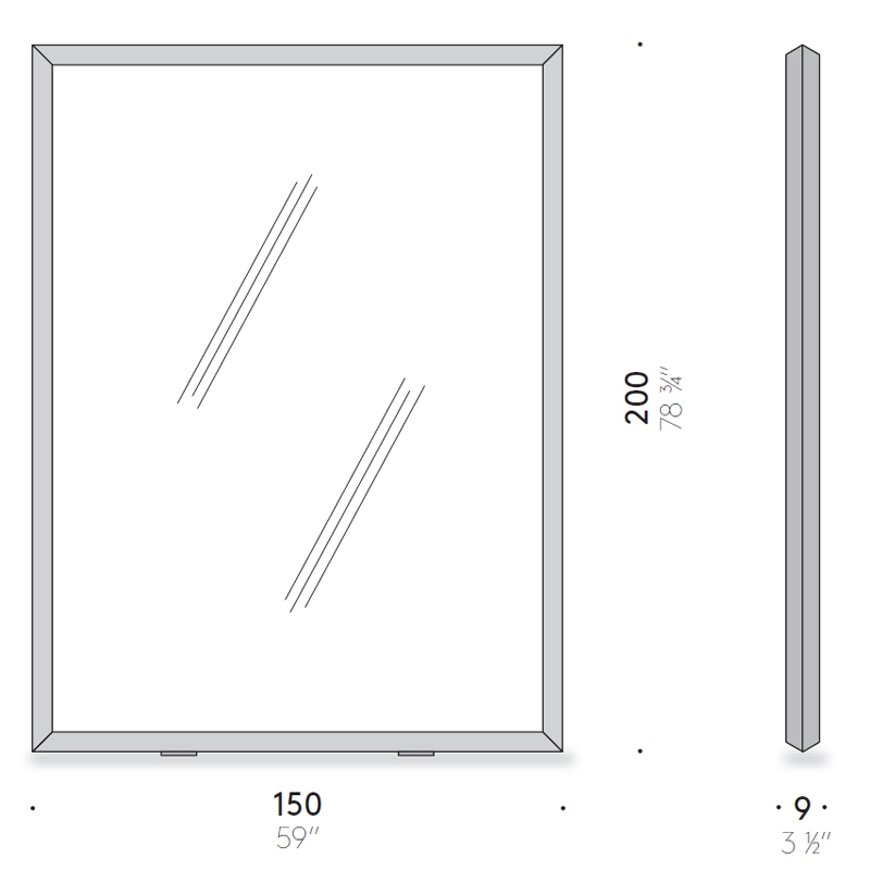 | Abmessungen | 150 x 9 x H 150 cm; 150 x 9 x H 200 cm. |