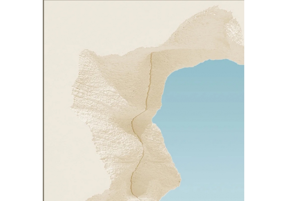 Broken Mirror Almost White entworfen von Snarkitecture für Gufram ist ein Spiegel mit einem weichen, weißen Polyurethanrahmen, der die Form einer Mauerlücke annimmt, eines Risses, der den ihn umgebenden Raum reflektiert, aber gleichzeitig einen optischen Effekt erzeugt, der befremdlich wirkt, als ob der Raum sich zur Außenwelt oder einer anderen Umgebung hin öffnet.