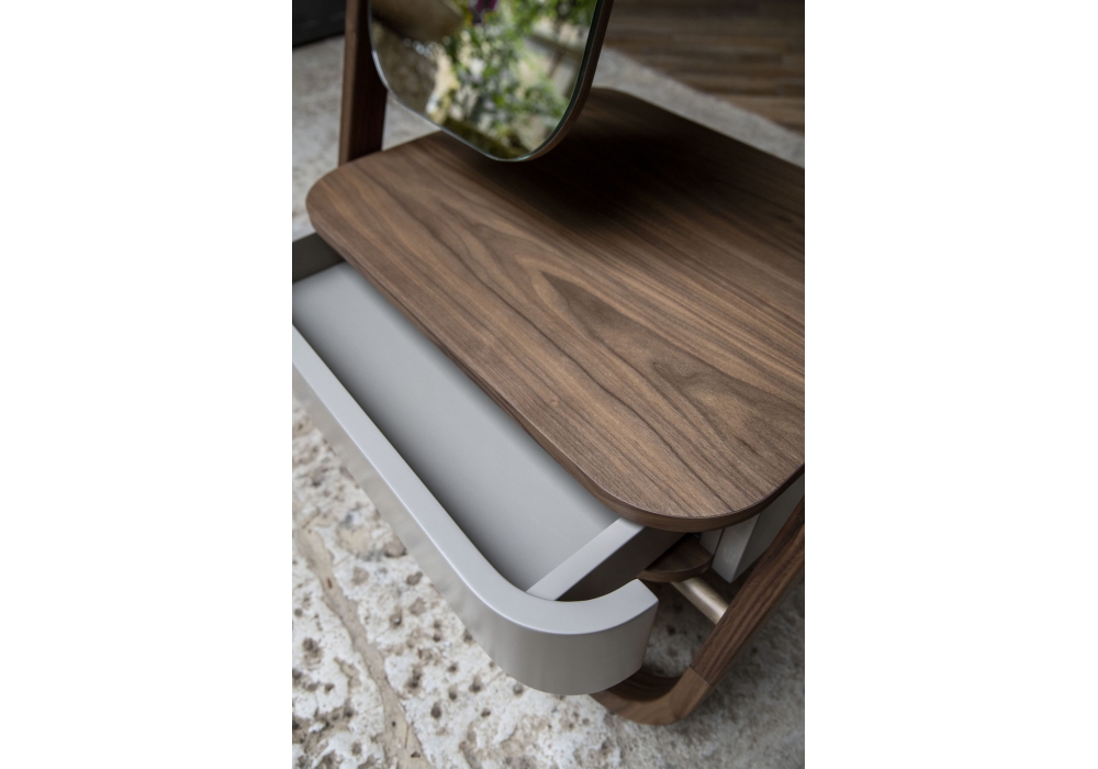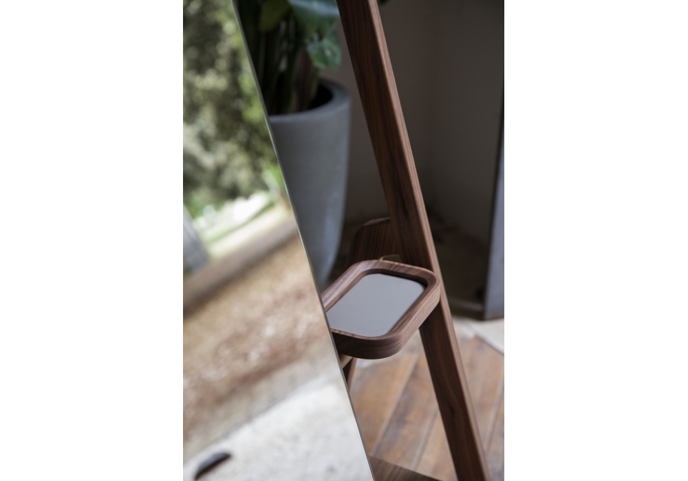 Tako von Setsu & Shinobu Ito + Leonardo Mercurio für Conte Casa entworfen, ist ein Spiegel mit Holzstruktur, Schublade und Platte aus Holz oder lackiertem Holz. Metalldetails. Verfügbar in mehreren Ausführungen.