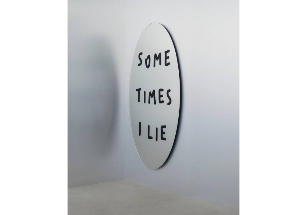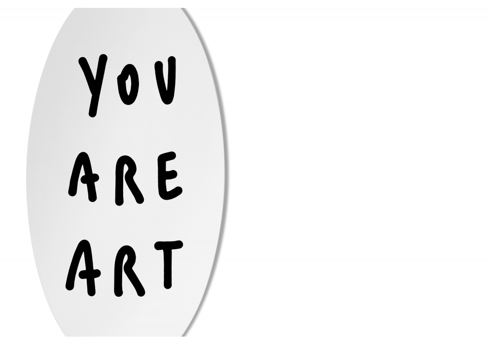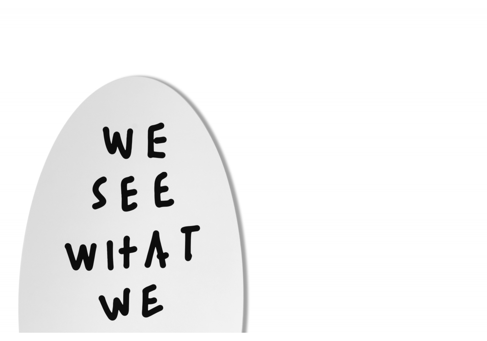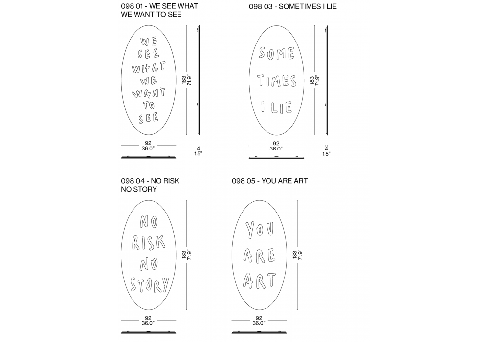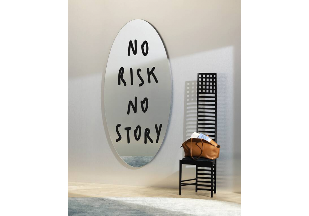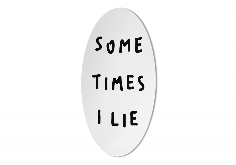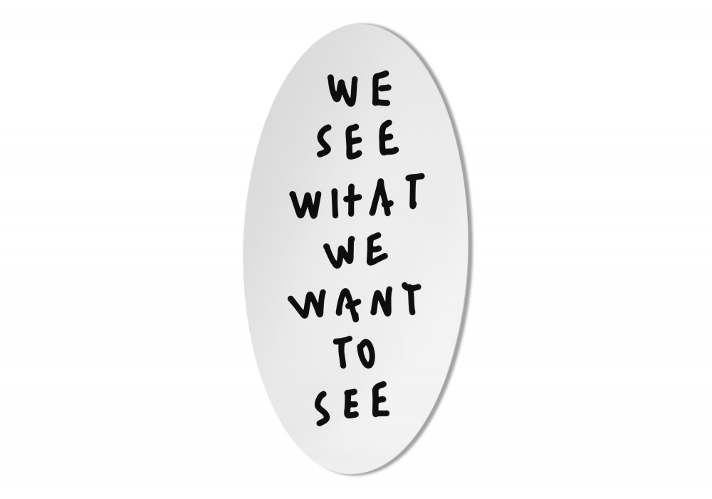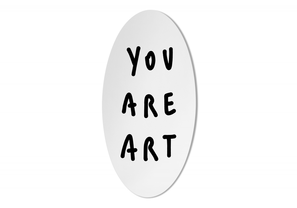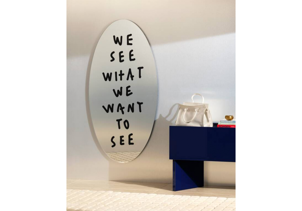 "Me From Outside" von Pietro Terzini für Cassina ist ein elliptischer Spiegel mit Siebdruck.