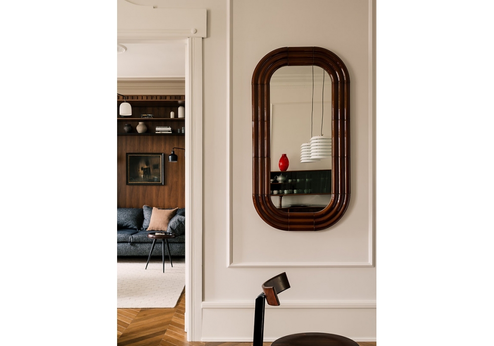 Elo von Pani Jurek entworfen, ist ein handgefertigter, luftglasierter Keramikspiegel. Verfügbar in mehreren Ausführungen.